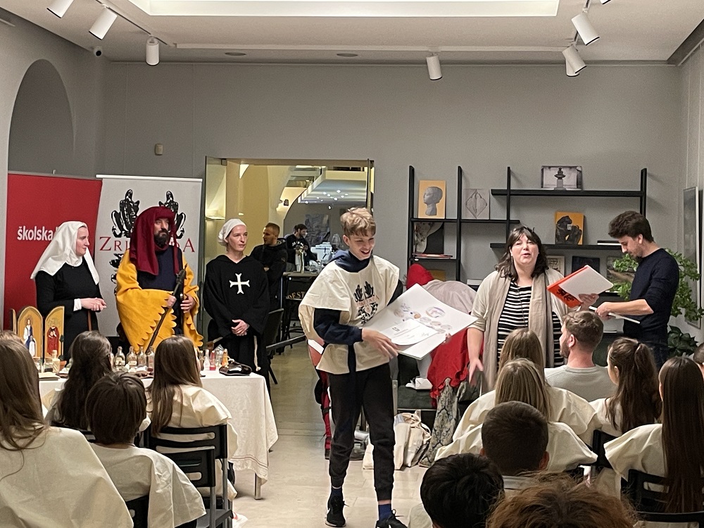 Naše učenice Franka V.  i Isabella D. te učenici Izak G. i Fran S. u petak 21. studenoga 2025. u Zagrebu su sudjelovali na jubilarnoj petoj Zrinijadi – zabavno-edukativnom kvizu o poznavanju povijesti obitelji Zrinski. Mentor učenicima bio je učitelj povijesti Ivan Vuk.