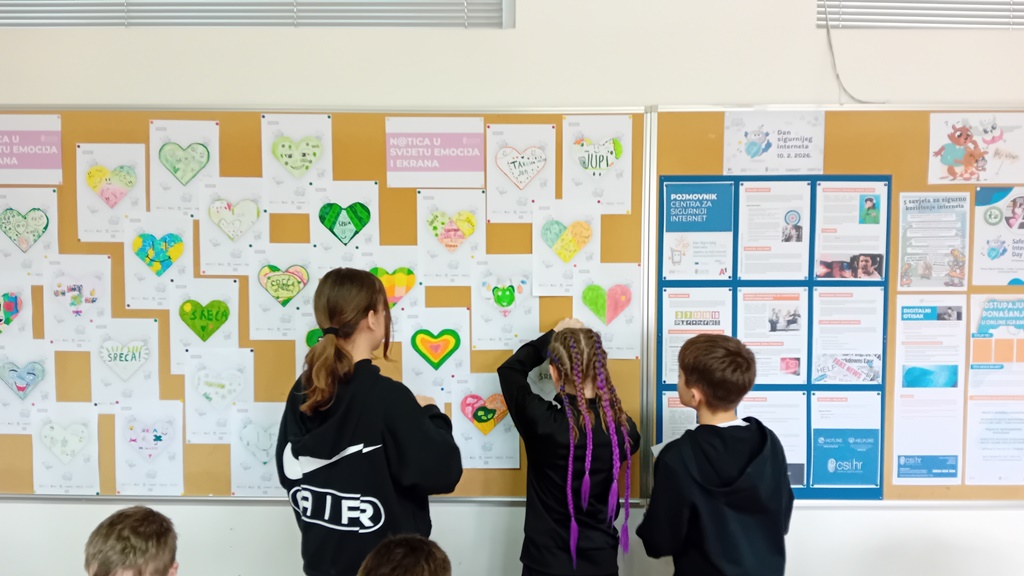 U srijedu, 11. veljače 2. b i 2. c razredi su s učiteljicom Dorotejom Lipović obilježili Dan sigurnijega interneta sudjelujući u radionici N@tica u svijetu emocija i ekrana. Prepoznavajući i imenujući emocije koje prate većinu digitalnih aktivnosti, učenici su naučili kako digitalni uređaji i društvene mreže mogu utjecati na raspoloženje. Podijelili su i vlastite primjere te se podržali i savjetovali jedni druge. Sve naučeno je zabilježeno crtežima.