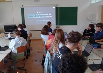 Učenici osmoga razreda sudjelovali su u suradničkoj aktivnosti u sklopu eTwinning projekta Green Digital Citizen – Today, Tomorrow, Always čija je glavna tema bila privatnost u eri umjetne inteligencije – osobni i osjetljivi podaci u korisničkim uputama generativnoj UI. Učenicima je prikazan video Privacy in Generative AI: Is Your Data Safe? (CodeLucky). Zatim su učenici sudjelovali u raspravi na Twinspace forumu Privacy in an AI Era – Personal and Sensitive Data in Generative AI Prompts. Putem Twinspacea škole su razmijenile primjere aktivnosti povodom Dana sigurnijeg interneta.