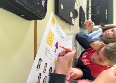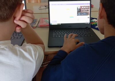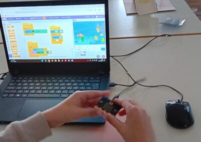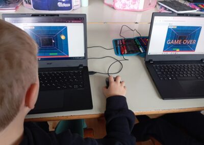 Učiteljica Ana Koprek provela je aktivnosti u sklopu nastavne aktivnosti iz Informatike s učenicima 2. A razreda. Učenici su u programu Scratch izrađivali jednostavne interaktivne igre kojima su učili osnovne pojmove programiranja na zabavan i kreativan način. Aktivnostima poput Klikni loptu i Bacanje otpada u pravi spremnik učenici su razvijali logičko razmišljanje, kreativnost i suradničke vještine. U igri Klikni loptu učenici su programirali lik lopte koji se pomiče po ekranu i broji svaki klik, dok su u igri Bacanje otpada u pravi spremnik učili o pravilnom razvrstavanju otpada kombinirajući kodiranje i ekološku osviještenost. Učenici su samostalno uređivali likove, dodavali zvukove i izrađivali vlastite varijante igara, što je dodatno potaknulo njihovu motivaciju i interes za programiranje već u ranoj dobi.