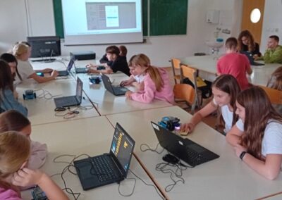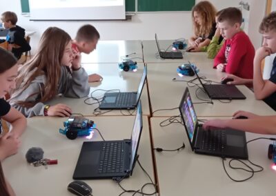 Učenici šestoga razreda sudjelovali su u aktivnosti nazvanoj Upoznajmo mBot i mBlock: Moj mBot svijetli, svira i kreće se tijekom koje su upoznali edukacijski robot mBot i program mBlock. Uvodnim primjerima učenici su upoznali neke mBlock naredbe za rad s robotom mBot (naredbe za LED diode, zujalicu, pokretanje i zakretanje robota).