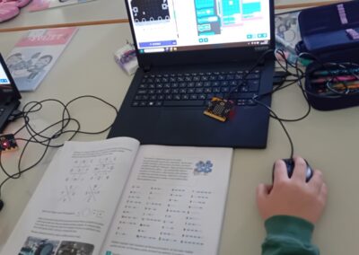 Učenici četvrtoga razreda sudjelovali su u aktivnosti Morseov kod – micro:bit izazov tijekom koje su upoznali BBC micro:bit i MS MakeCode sučelje u kojem su programirali micro:bit tako da ga mogu koristiti za prikaz Morseovih znakova. Ova aktivnost nadovezala se na gradivo o kriptografiji i načinima šifriranja o čemu su učenici nedavno učili na satovima Informatike. Druga aktivnost za učenike četvrtoga razreda nazvana je Upoznajmo Ozobot Bit+ i Ozoblockly. Učenici su prateći uvodne primjere upoznali edukacijski robot Ozobot Bit+ i vizualni programski jezik OzoBlockly, a zatim su rješavali izazov Rectangle Walk Challenge.