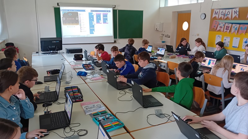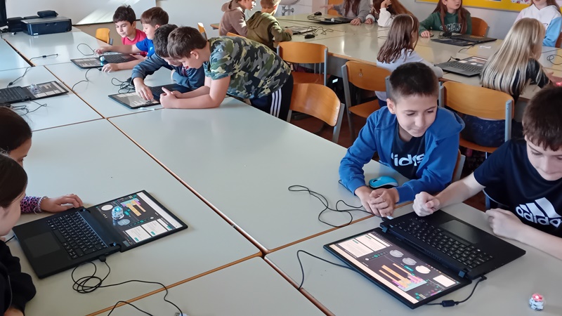Učenici četvrtoga razreda sudjelovali su u aktivnosti Morseov kod – micro:bit izazov tijekom koje su upoznali BBC micro:bit i MS MakeCode sučelje u kojem su programirali micro:bit tako da ga mogu koristiti za prikaz Morseovih znakova. Ova aktivnost nadovezala se na gradivo o kriptografiji i načinima šifriranja o čemu su učenici nedavno učili na satovima Informatike. Druga aktivnost za učenike četvrtoga razreda nazvana je Upoznajmo Ozobot Bit+ i Ozoblockly. Učenici su prateći uvodne primjere upoznali edukacijski robot Ozobot Bit+ i vizualni programski jezik OzoBlockly, a zatim su rješavali izazov Rectangle Walk Challenge.