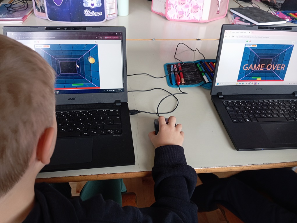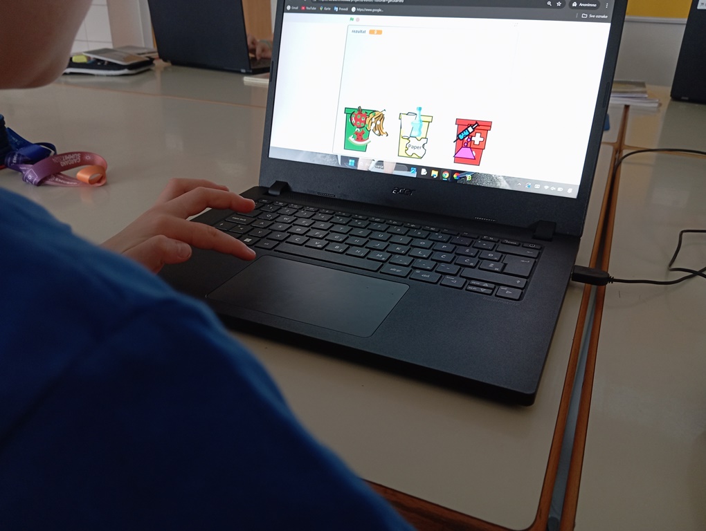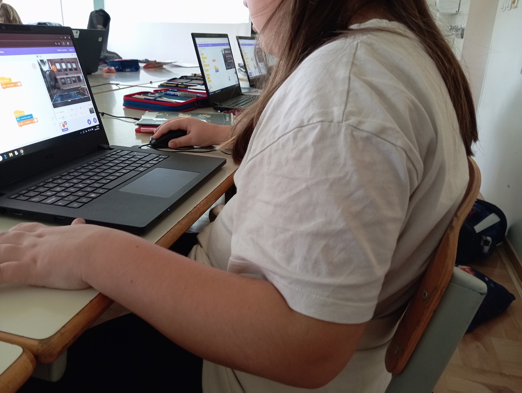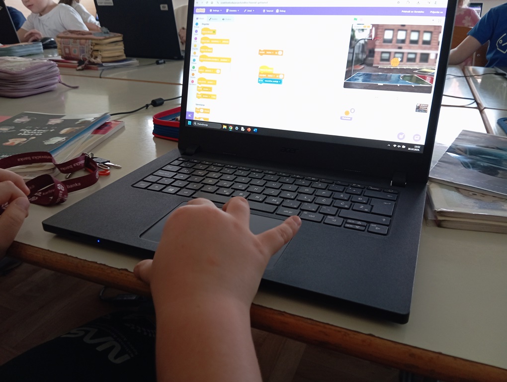 Učiteljica Ana Koprek provela je aktivnosti u sklopu nastavne aktivnosti iz Informatike s učenicima 2. A razreda. Učenici su u programu Scratch izrađivali jednostavne interaktivne igre kojima su učili osnovne pojmove programiranja na zabavan i kreativan način. Aktivnostima poput Klikni loptu i Bacanje otpada u pravi spremnik učenici su razvijali logičko razmišljanje, kreativnost i suradničke vještine. U igri Klikni loptu učenici su programirali lik lopte koji se pomiče po ekranu i broji svaki klik, dok su u igri Bacanje otpada u pravi spremnik učili o pravilnom razvrstavanju otpada kombinirajući kodiranje i ekološku osviještenost. Učenici su samostalno uređivali likove, dodavali zvukove i izrađivali vlastite varijante igara, što je dodatno potaknulo njihovu motivaciju i interes za programiranje već u ranoj dobi.