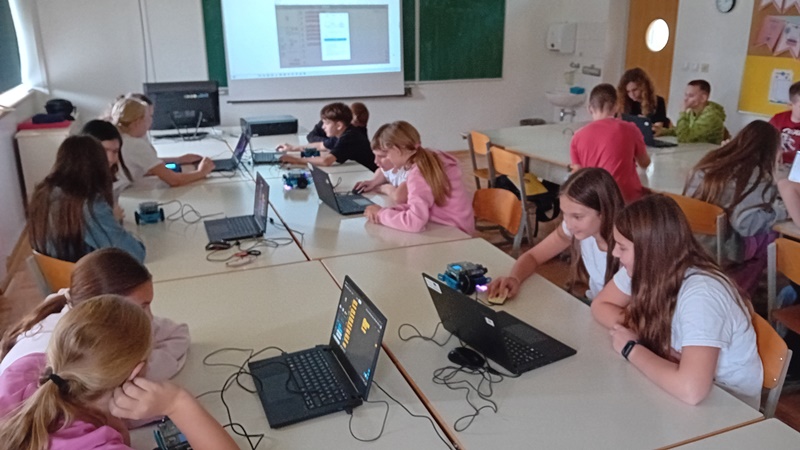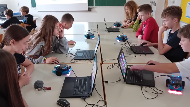 Učenici šestoga razreda sudjelovali su u aktivnosti nazvanoj Upoznajmo mBot i mBlock: Moj mBot svijetli, svira i kreće se tijekom koje su upoznali edukacijski robot mBot i program mBlock. Uvodnim primjerima učenici su upoznali neke mBlock naredbe za rad s robotom mBot (naredbe za LED diode, zujalicu, pokretanje i zakretanje robota).