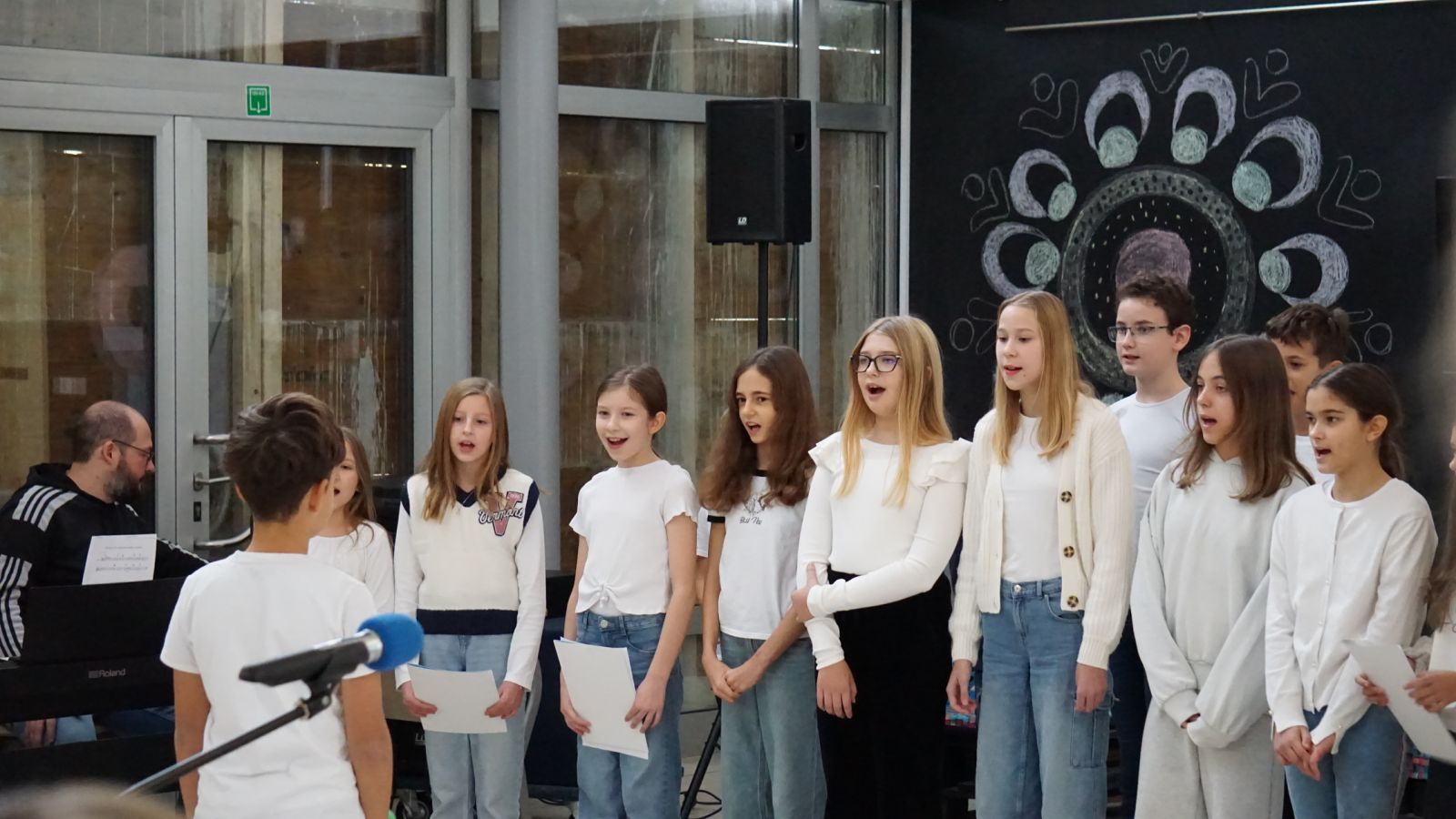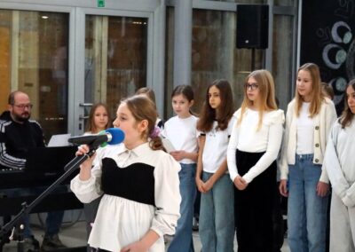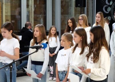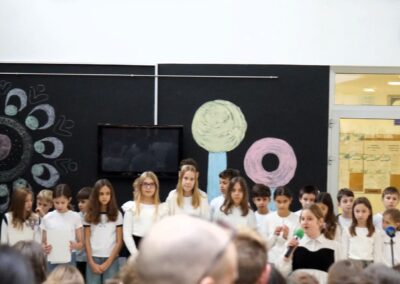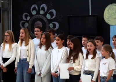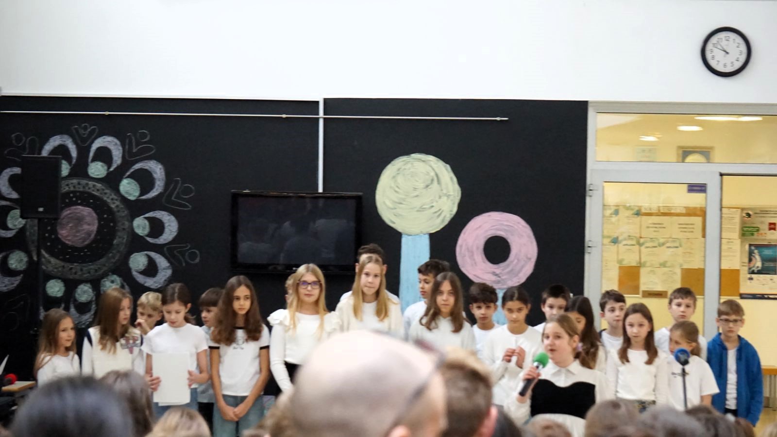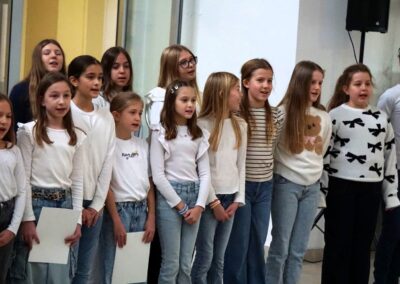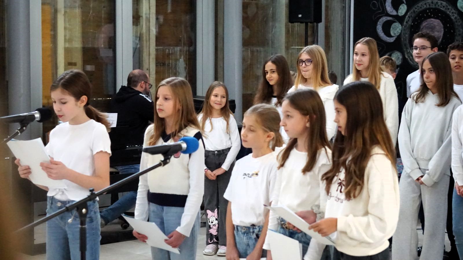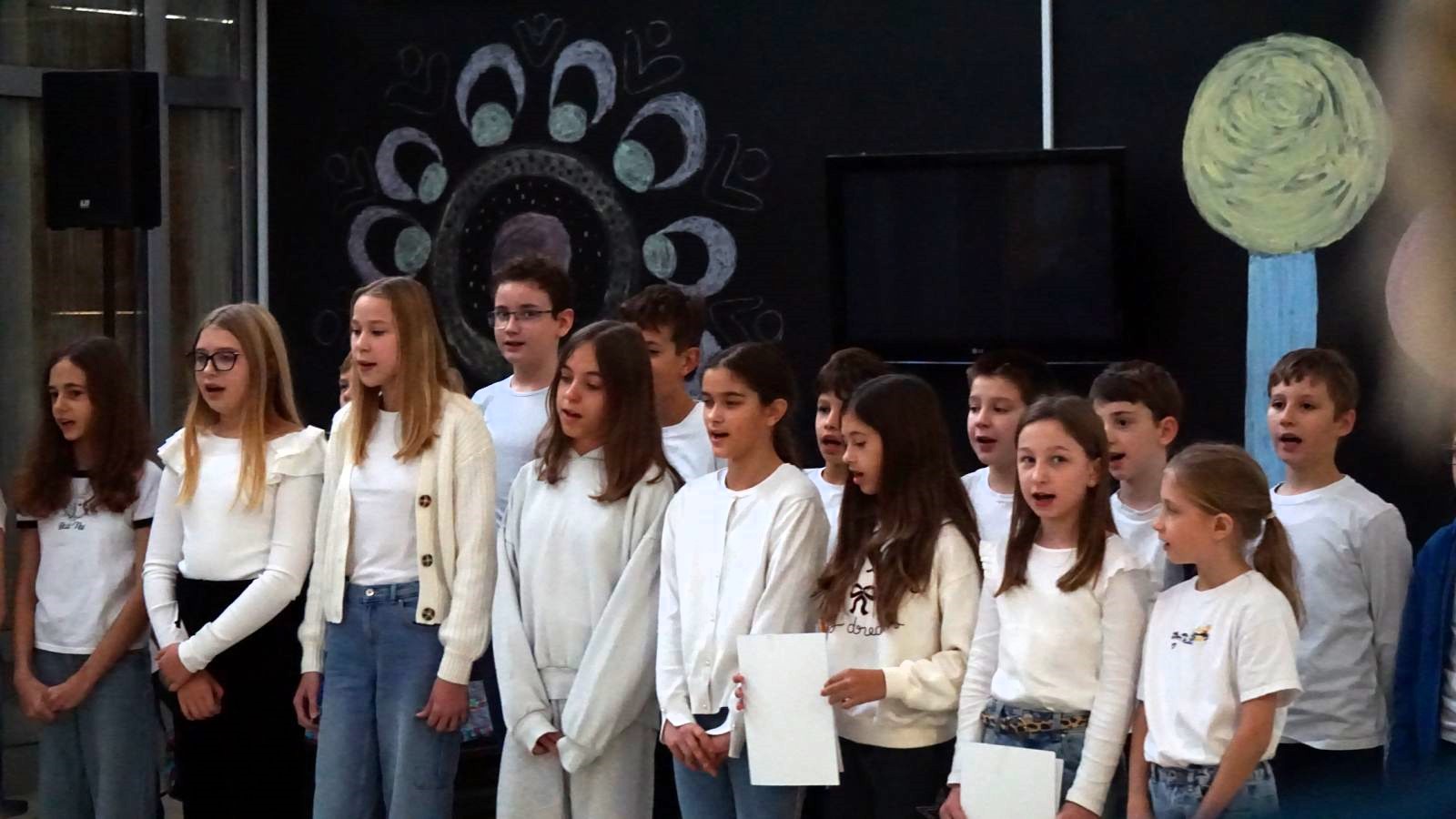 Nastupili su i školski zborovi. Mali zbor otpjevao je pjesme „Raca plava po Dravi”, „Žena išla na gosti” te brojalicu „Drotička”. U suradnji s Velikim zborom izveli su i dobro poznate melodije „Klinček stoji pod oblokom” te „Mamica su štrukle pekli” koje su razveselile sve prisutne.