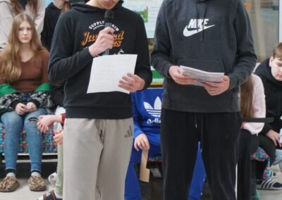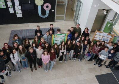 Učenici 7. a razreda sa svojim razrednikom, vjeroučiteljem Vladimirom Cesarom, istraživali su sadržaje o skelarenju na rijeci Muri. Zanimljivosti, koje su proučili i prikazali zorno na plakatu, demonstrirali su u integraciji sadržaja. Naglasili su da je tradicija prijevoza ljudi i dobara skelama preko Mure i Drave zaštićeno nematerijalno dobro. Skelari posjeduju duboko znanje o vodostajima, strujama i ponašanju rijeke, što je ključno za razumijevanje i očuvanje ekosustava.