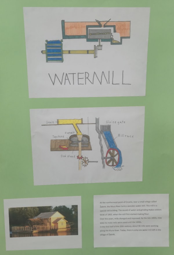 Voditeljica dodatne nastave Engleskoga jezika Branka Lamza motivirala je učenike na istraživanje o mlinarenju. Učenici dodatne nastave predstavili su na engleskome jeziku kako su ljudi u prošlosti od žitarica dobivali brašno u mlinovima na rijeci Muri.
