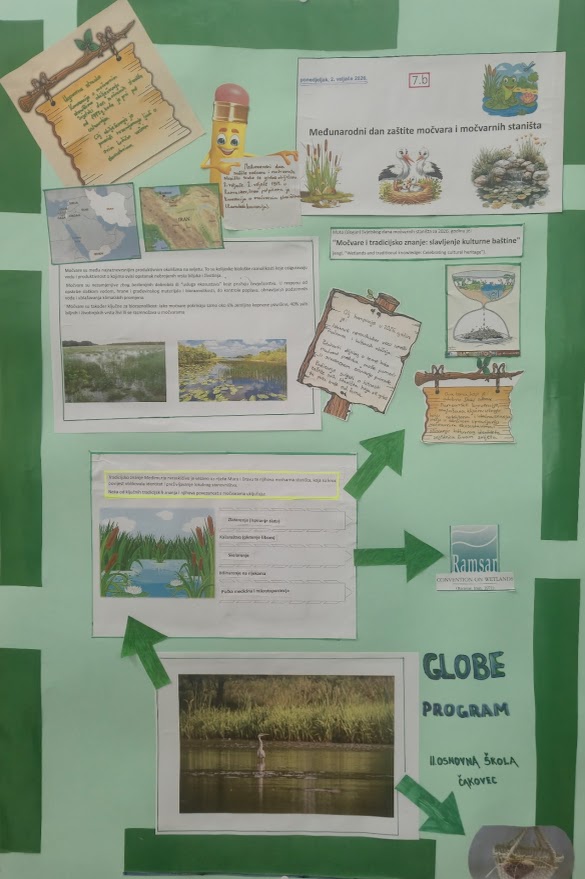 Učenici 7. b razreda na nastavi Geografije proučavali su važnost Ramsarskog ugovora i istaknuli su neraskidivu vezu između močvara i kulturnih običaja. Cilj njihovog istraživanja bio je proučiti kako mudrost predaka može pomoći u suvremenom očuvanju prirode te podizanje svijesti o hitnosti zaštite ovih staništa koja se gube tri puta brže od šuma.