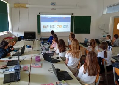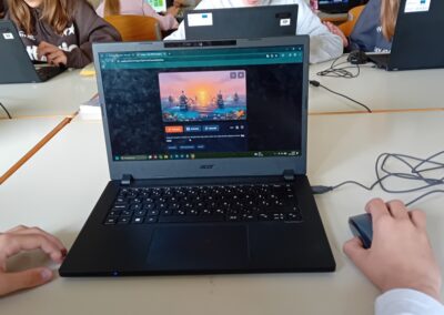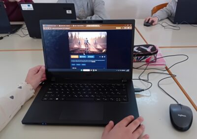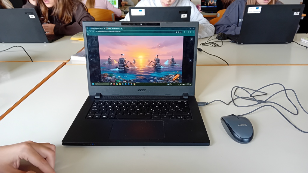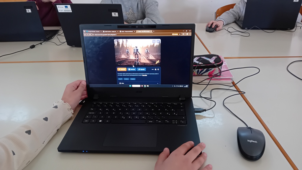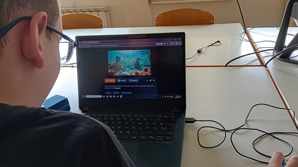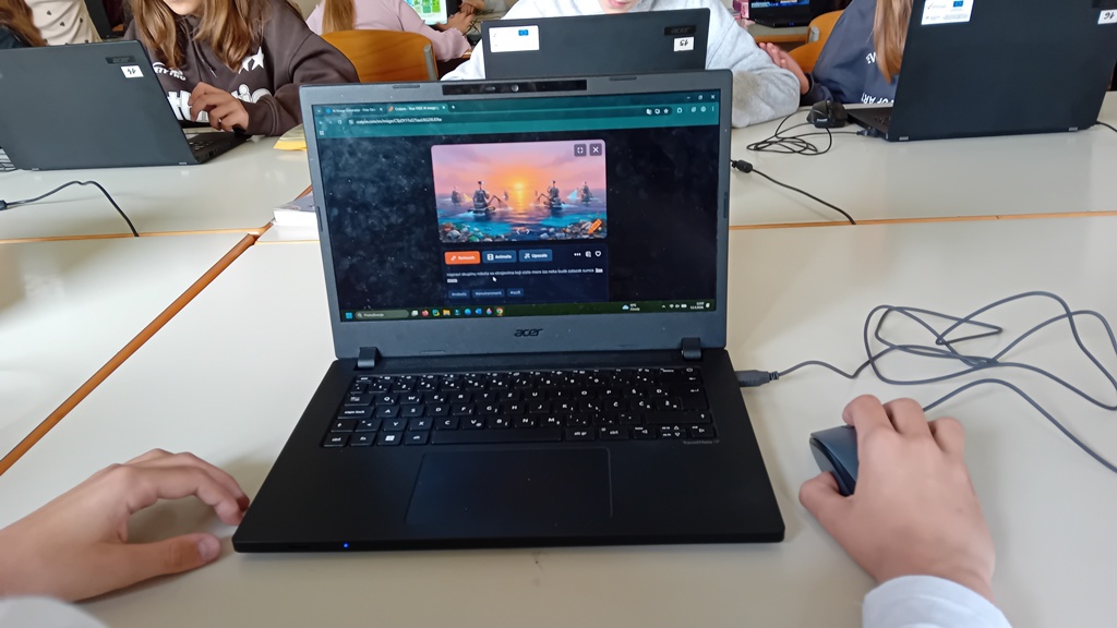 Učenici četvrtoga razreda sudjelovali su u aktivnosti nazvanoj AI – Turn your prompt into success i radili na rješenju odabranoga problema stvarajući slike pomoću alata generativne umjetne inteligencije koje prikazuju njihovu viziju rješenja uočenoga problema. U uvodnome dijelu aktivnosti razgovaralo se s učenicima o tome što je generativna umjetna inteligencija i jesu li koristili neki alat za generiranje slika, teksta ili nečega drugoga. Zatim je učenicima objašnjeno kako napisati dobar korisnički opis (prompt) za generiranje slike pomoću alata umjetne inteligencije, dani su im savjeti i pokazan primjer. Učenicima je demonstrirana primjena nekoliko alata generativne umjetne inteligencije za generiranje slika koje mogu koristiti u besplatnoj verziji i bez registracije, a zatim su sami eksperimentirali i odabrali alat generativne umjetne inteligencije koji će koristiti za generiranje slike. Učenici su za isti korisnički opis (prompt) generirali sliku s dva ili tri alata, uočili razlike i usporedili dobivene slike te odabrali alat koji je pružao bolji rezultat. Učenici su upozoreni da besplatne verzije imaju različita ograničenja, npr. ograničen broj slika koje možemo generirati u danu ili slično ograničenje. Učenici su svoj korisnički opis mogli pisati na hrvatskom ili na engleskom jeziku uz pomoć Google Prevoditelja. Preuzete slike učenici su predali na Teams, u Zadaće. Najveći broj učenika odabrao je Craiyon, a nekoliko učenika druge generatore slika umjetne inteligencije.
