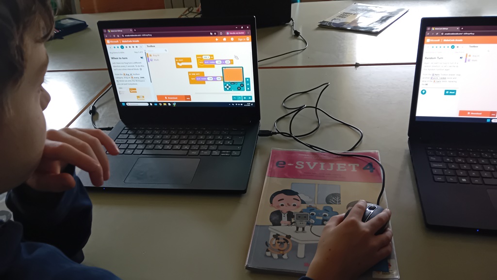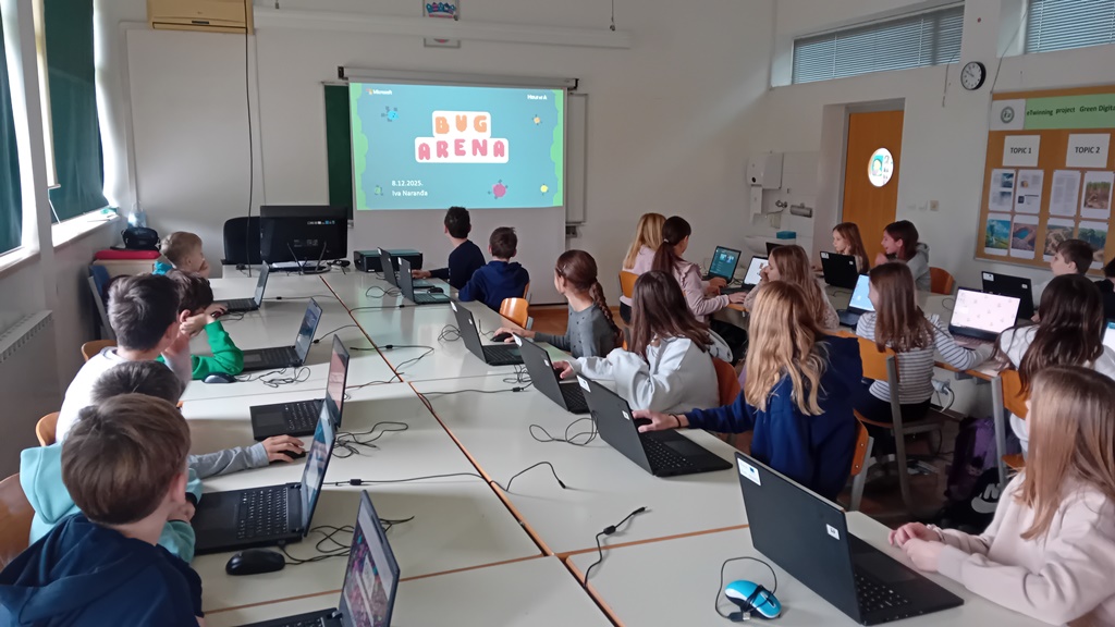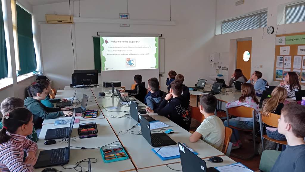 Učenici četvrtoga razreda sudjelovali su u aktivnosti Bug Arena from Microsoft Makecode koja upoznaje učenike s umjetnom inteligencijom učenjem temeljenom na igri i zabavi.