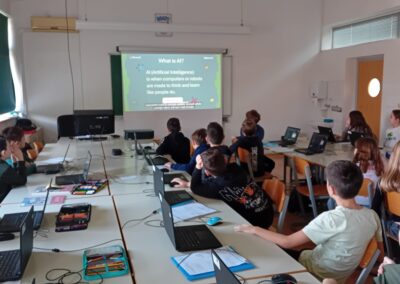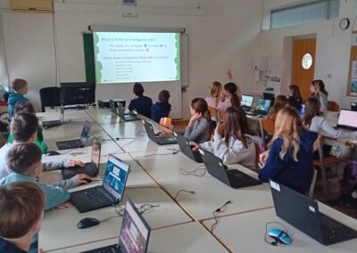 Polaznici izvannastavne aktivnosti Informatika+ sudjelovali su u dvije aktivnosti, Bug Areni i već dobro poznatoj i kvalitetnoj UI za oceane (AI for Oceans) koja je i sada ponuđena za Sat umjetne inteligencije. Kroz aktivnost UI za oceane učenici su na zabavan način učili o strojnom učenju, etičkoj uporabi umjetne inteligencije, podacima za obuku i pristranosti te istraživali etička pitanja i kako se umjetna inteligencija može koristiti za rješavanje svjetskih problema. Idući tjedan polaznici izvannastavne aktivnosti Informatika+ nastavit će s dodatnim aktivnostima Bug Arene.