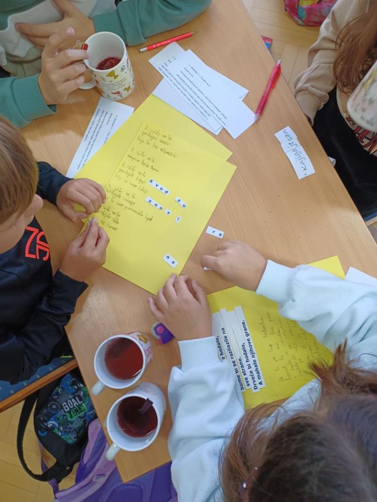 Nakon što su pročitali zbirku Vitezovih pjesama, učenici su u timovima rješavali zadatke koji su ih poticali na razmišljanje i suradnju. Spajali su stihove, dovršavali započete rečenice, slagali slagalicu koja je skrivala pjesničku sliku, glumili su Antuntuna te su stvarali vlastite stihove nadahnute Vitezovim motivima i ritmom.