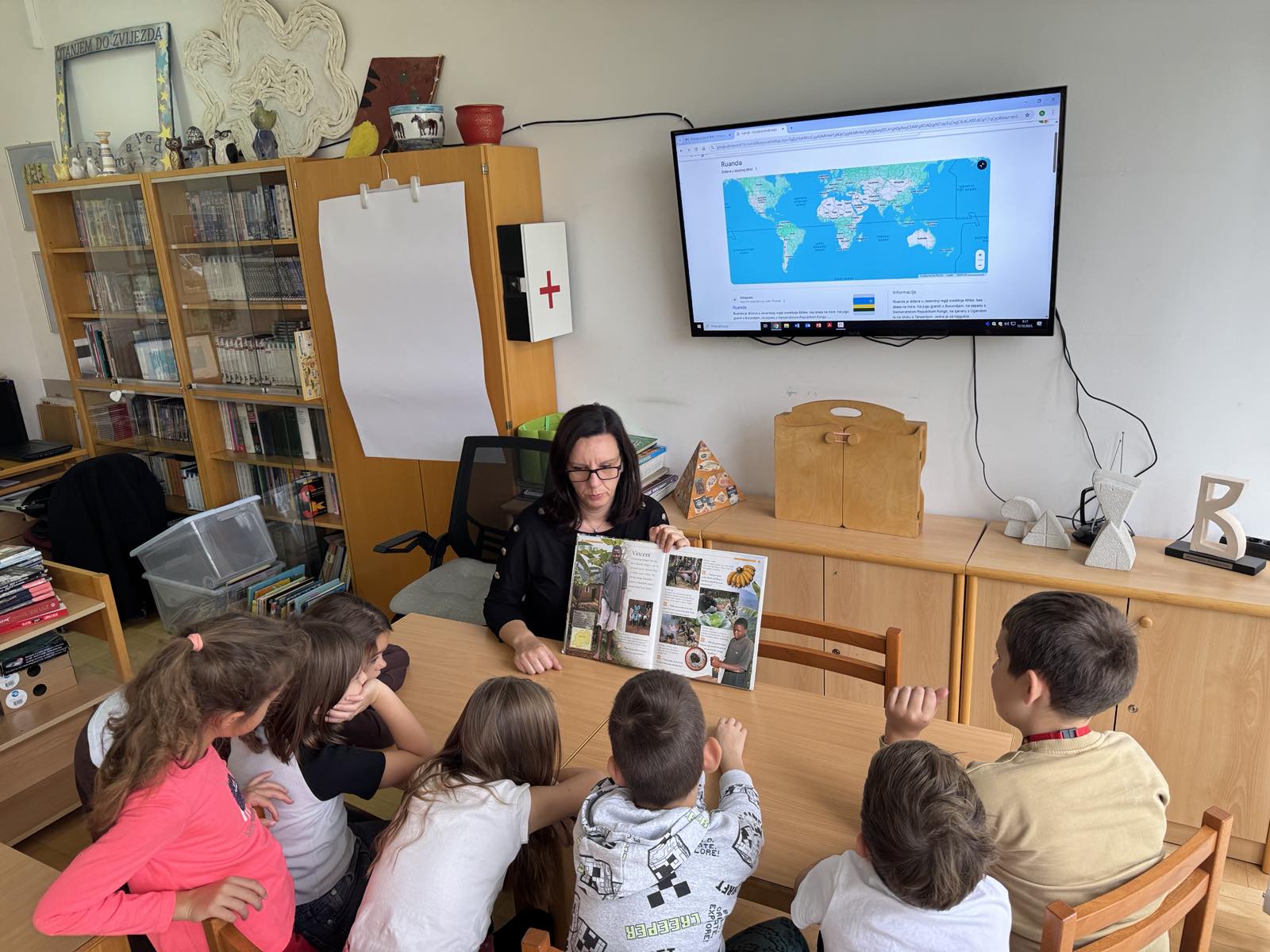 Naše putovanje nastavili smo u školskoj knjižnici gdje smo uz pomoć knjižničarke Nine Vugrinec istražili kako žive i što doručkuju naši vršnjaci diljem svijeta.