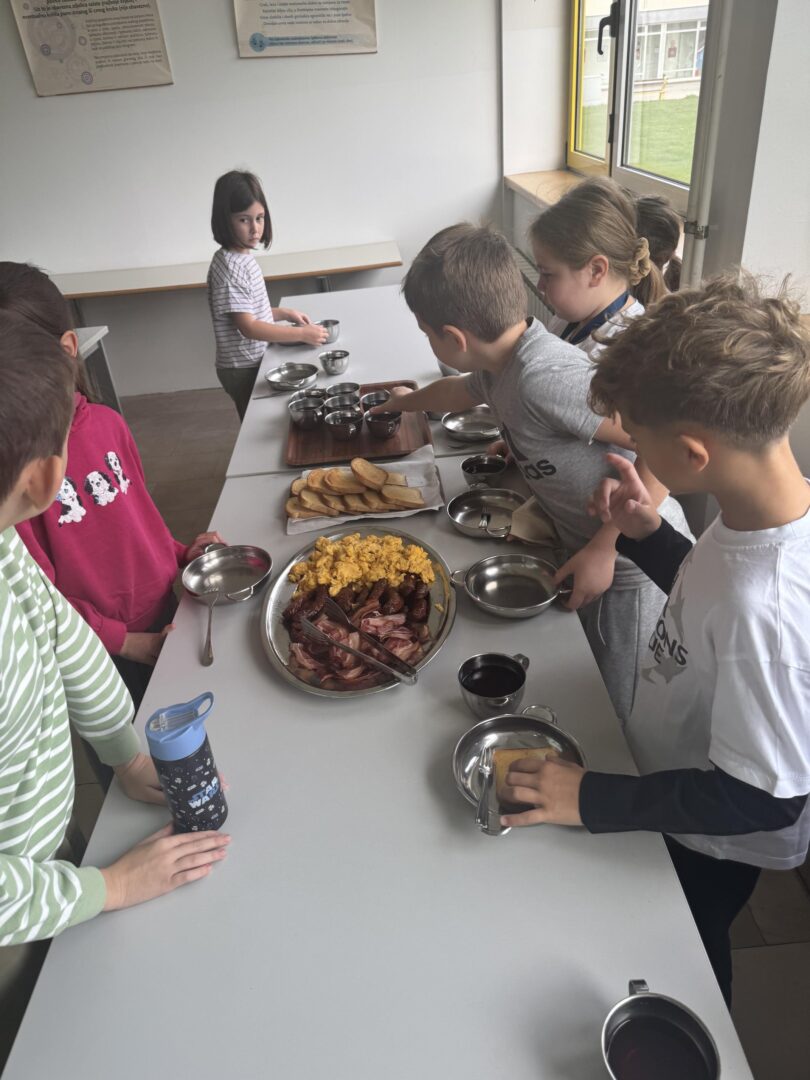 Posebno zanimljiv dio bio je kušanje različitih doručaka iz cijeloga svijeta pa smo tako okusili engleski, brazilski, talijanski i američki doručak. Zahvaljujući našoj kuharici Boženi i kuharima Kreši i Deanu, učenici su imali priliku otkriti nove okuse, usporediti ih s našim tradicionalnim doručkom i razgovarati o zdravim izborima hrane.
