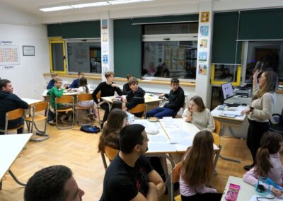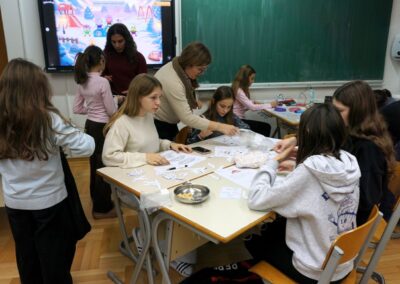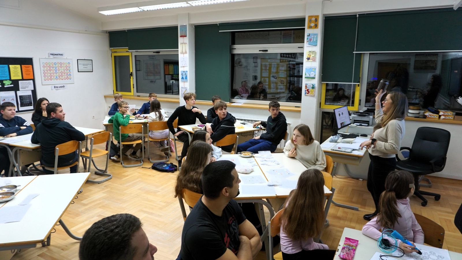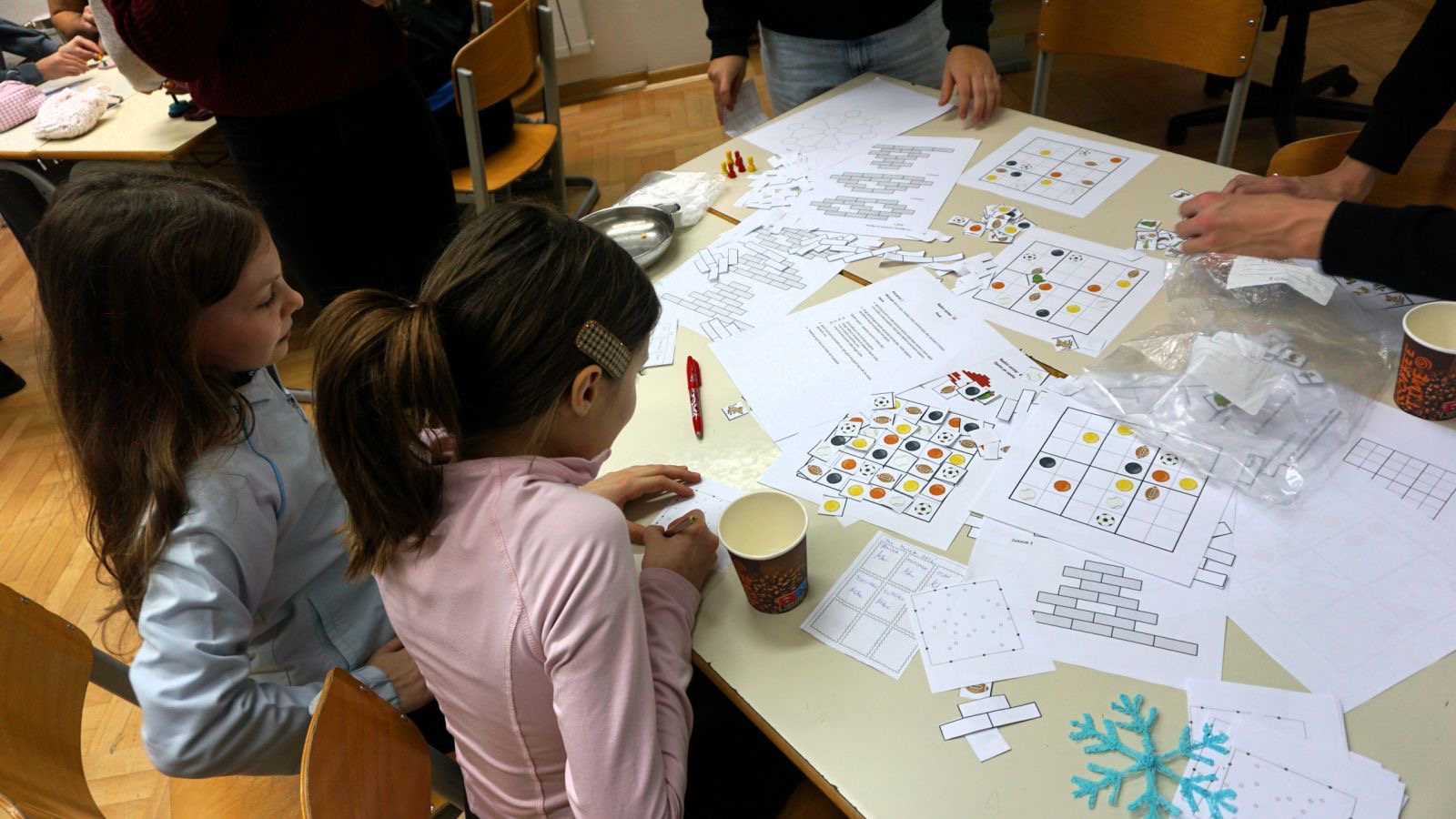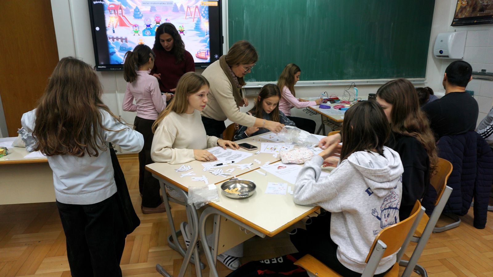 U ponedjeljak, 15. prosinca 2025. održana je još jedna zanimljiva i zabavna Večer matematike za učenike viših razreda i njihove roditelje. Radi se o skupu interaktivnih radionica koje potiču izgradnju pozitivnoga stava učenika prema matematici. Naše učiteljice matematike Nives Horvat i Karla Mikec pripremile su puno slatkih i slanih matematičkih poslastica, a novinarska grupa te učiteljica Branka Lamza sva su događanja popratili svojim oštrim perom i fotografskim okom.